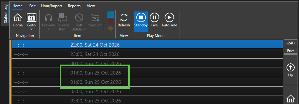 If you are using Myriad to Schedule the Logs for your station, the good news is that you don't need to do anything at all, Myriad will automatically schedule the second 1am hour using the same clock template as it used for the first. The songs/links etc. will even still honour all the normal rotations and rules, so the log will continue to just have your normal station sound. Again, you can even leave in any hard time events/external audio etc. and they will be played as normal.